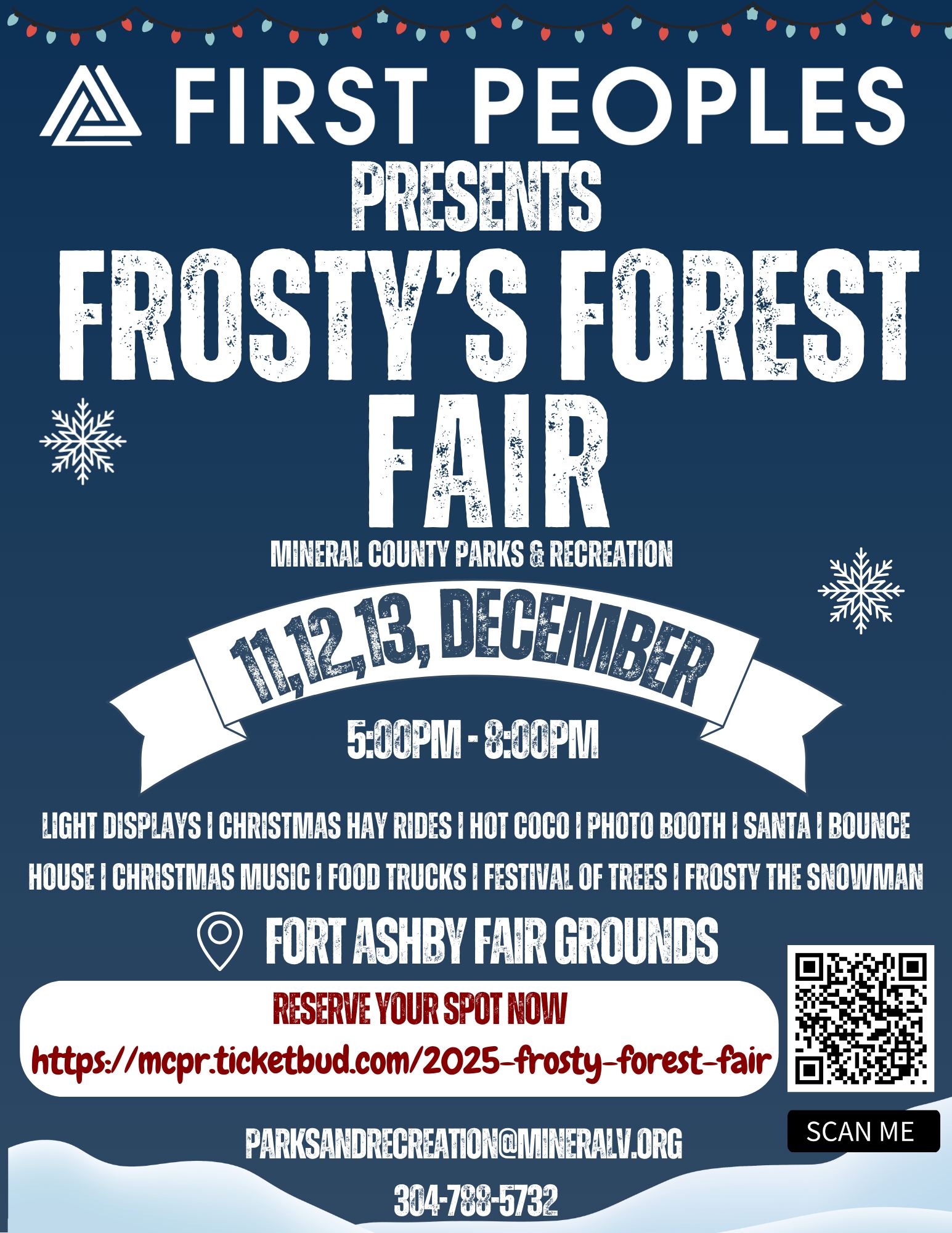 To reserve your spot, visit the ticketing page here: https://mcpr.ticketbud.com/2025-frosty-forest-fair